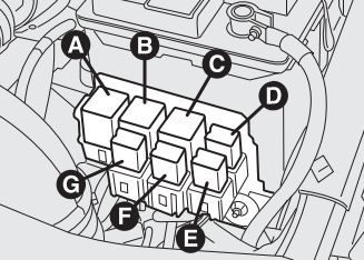 | A | Engine radiator cooling fan 2nd speed relay (T.SPARK versions) |