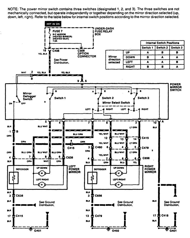 Acura CL (1997 – 1999) – wiring diagrams – heated mirror