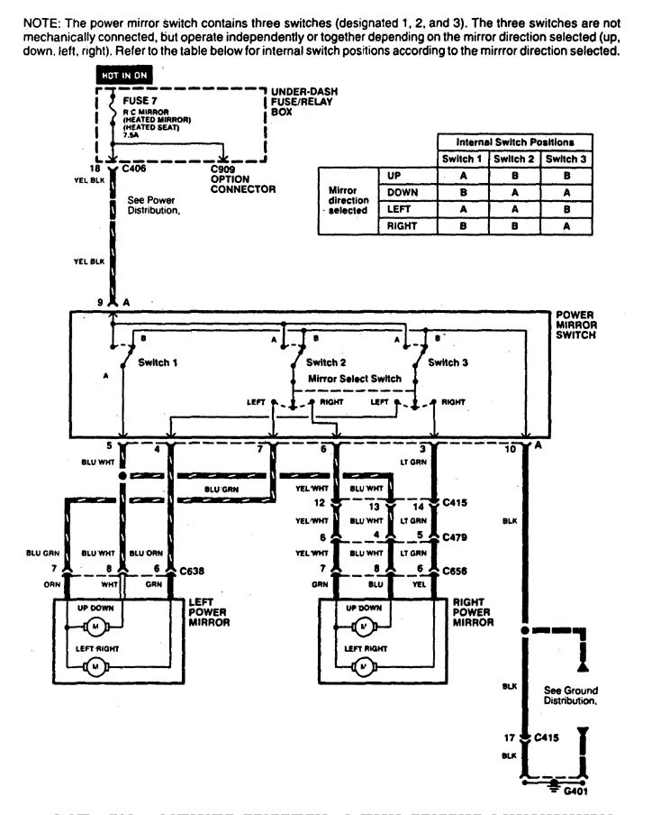 Acura CL (1997 – 1999) – wiring diagrams – power mirrors