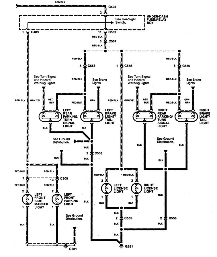 Acura CL (1997 – 1999) – wiring diagrams – side marker lamp