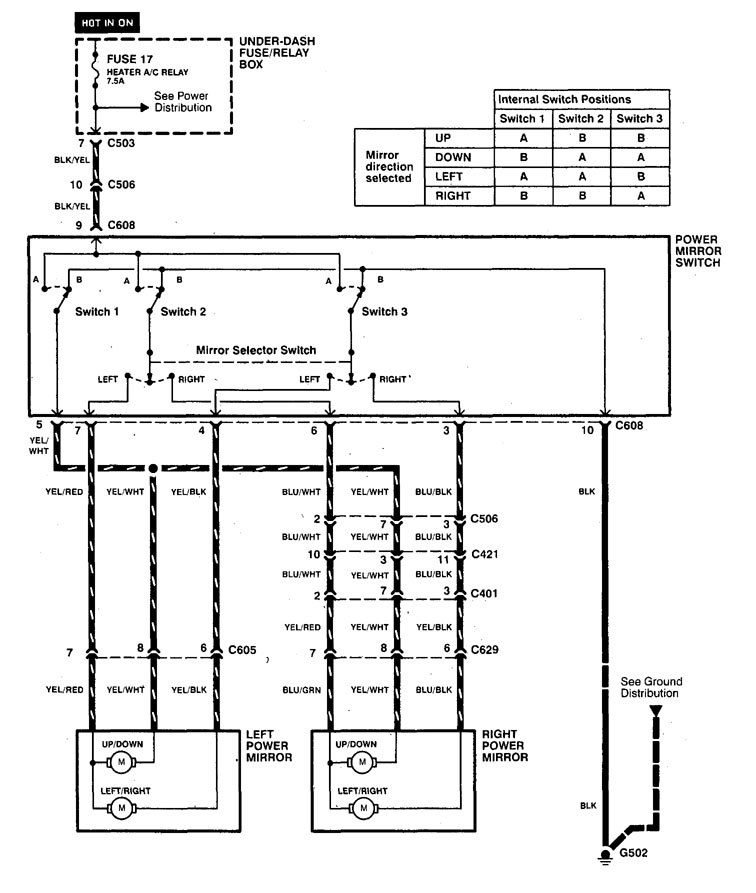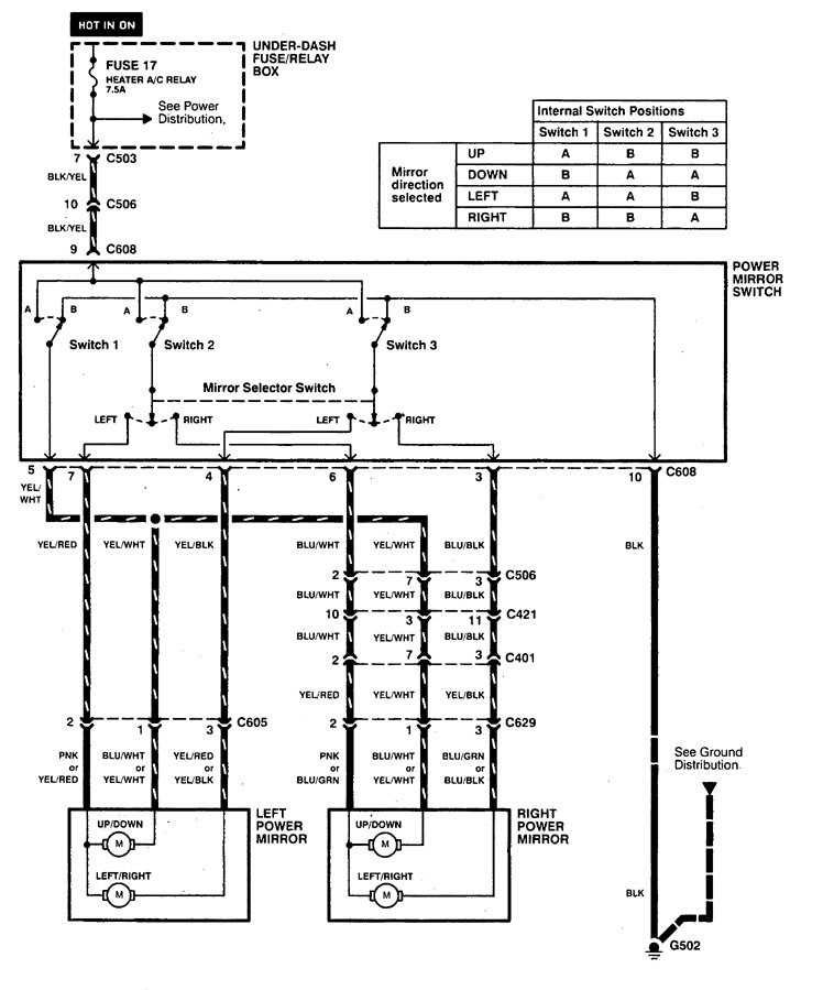 Acura Integra (1998 -2001) – wiring diagrams – power mirrors