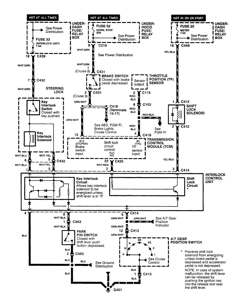 Acura Integra (1998 – 2001) – wiring diagrams – shift interlock
