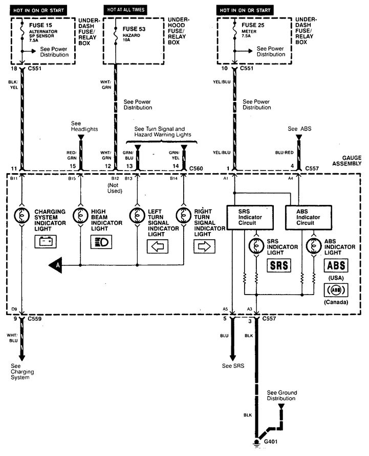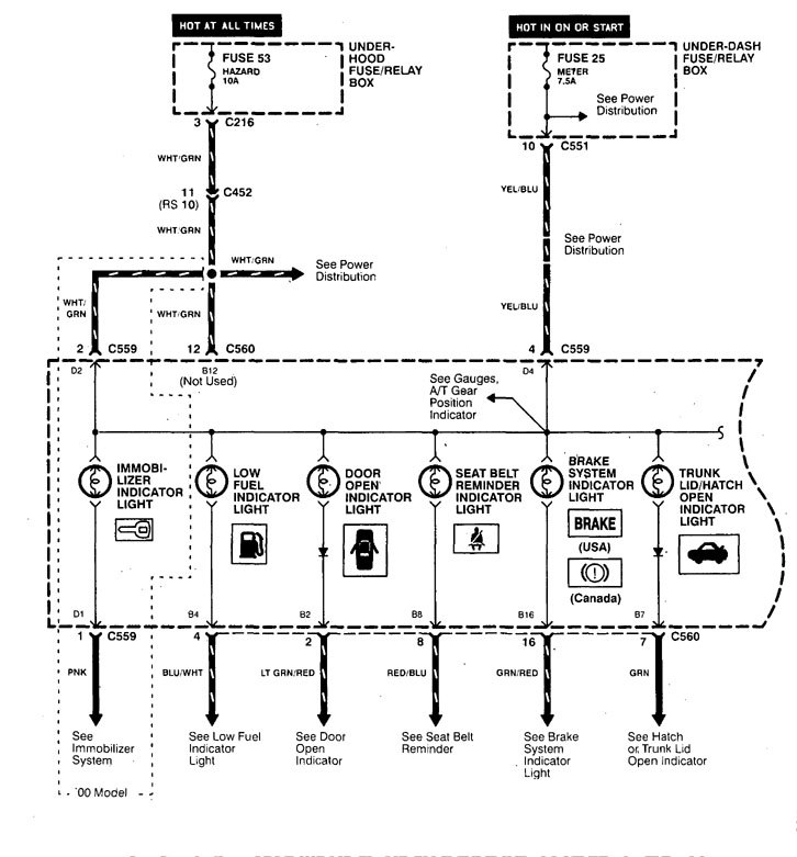 Acura Integra (1998 – 2001) – wiring diagrams – warning indicator