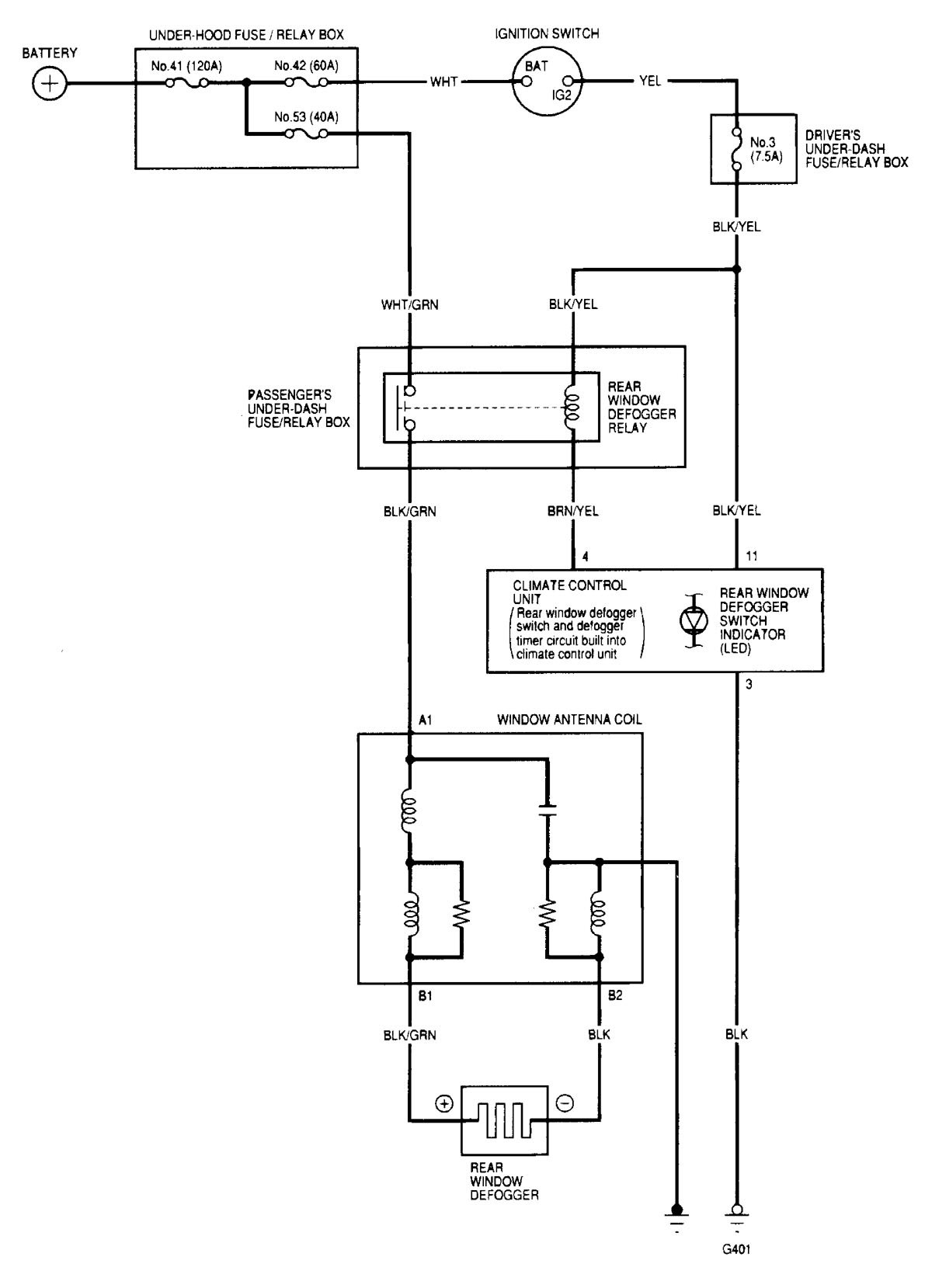Acura Integra (2000 – 2001) – wiring diagrams – rear window defogger