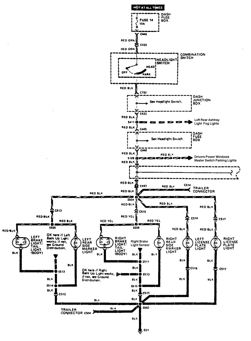 Acura Legend (1990) – wiring diagram – license plate lamp