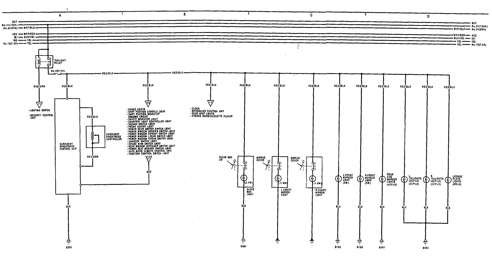 Acura Legend (1991 – 1992) – wiring diagram – glove compartment lamp