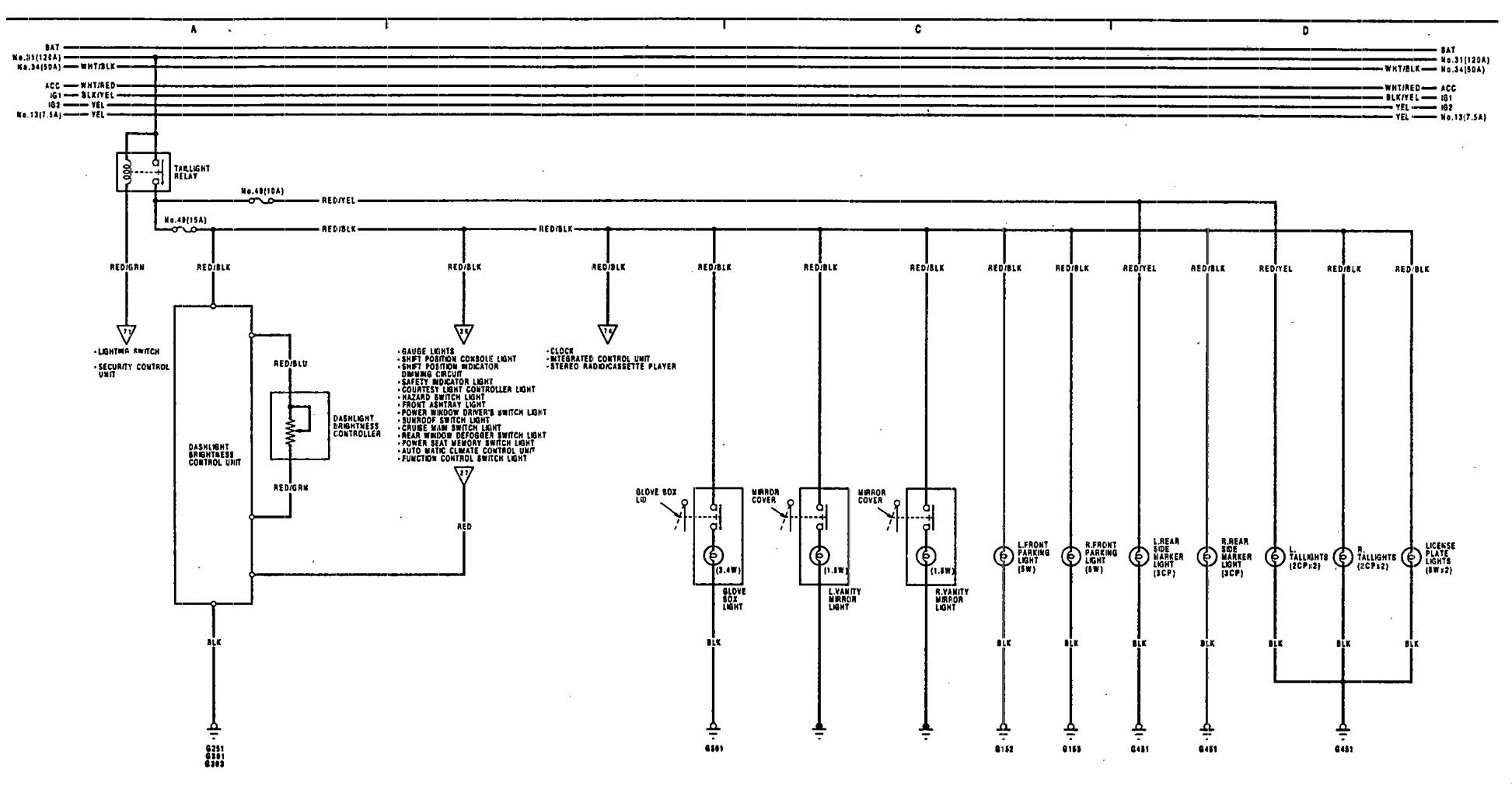 Acura Legend (1991 – 1992) – wiring diagram – vanity mirror lamp