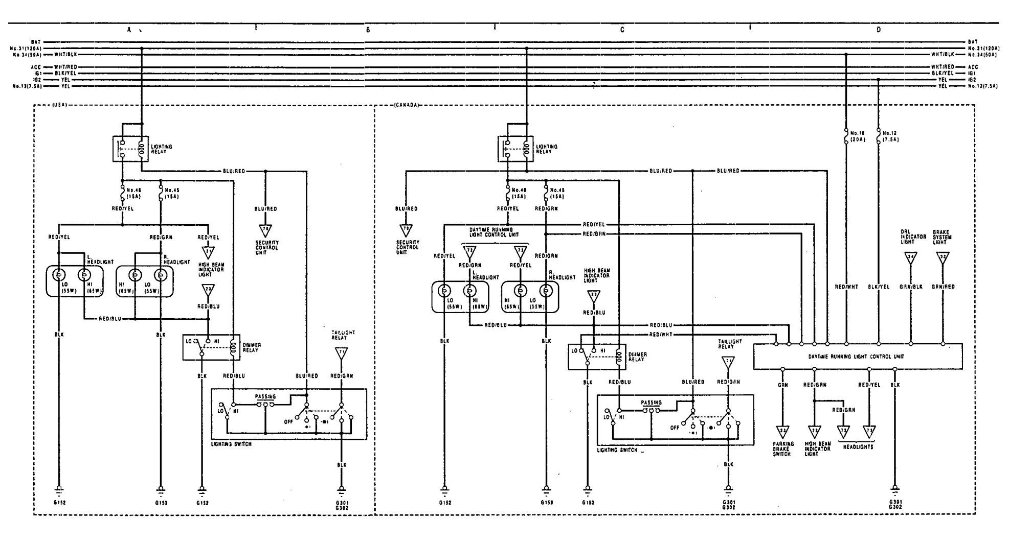 Acura Legend (1991 – 1993) – wiring diagram – headlamps