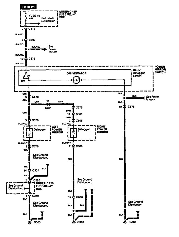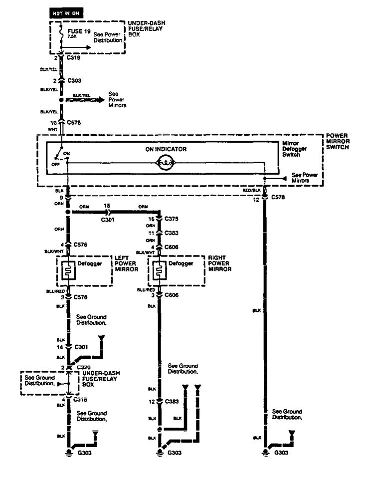 Acura Legend (1994 – 1995) – wiring diagram – heated mirror