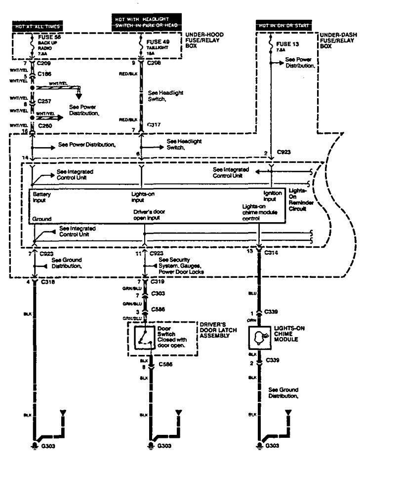 Acura Legend (1994 – 1995) – wiring diagram – lamp out warning