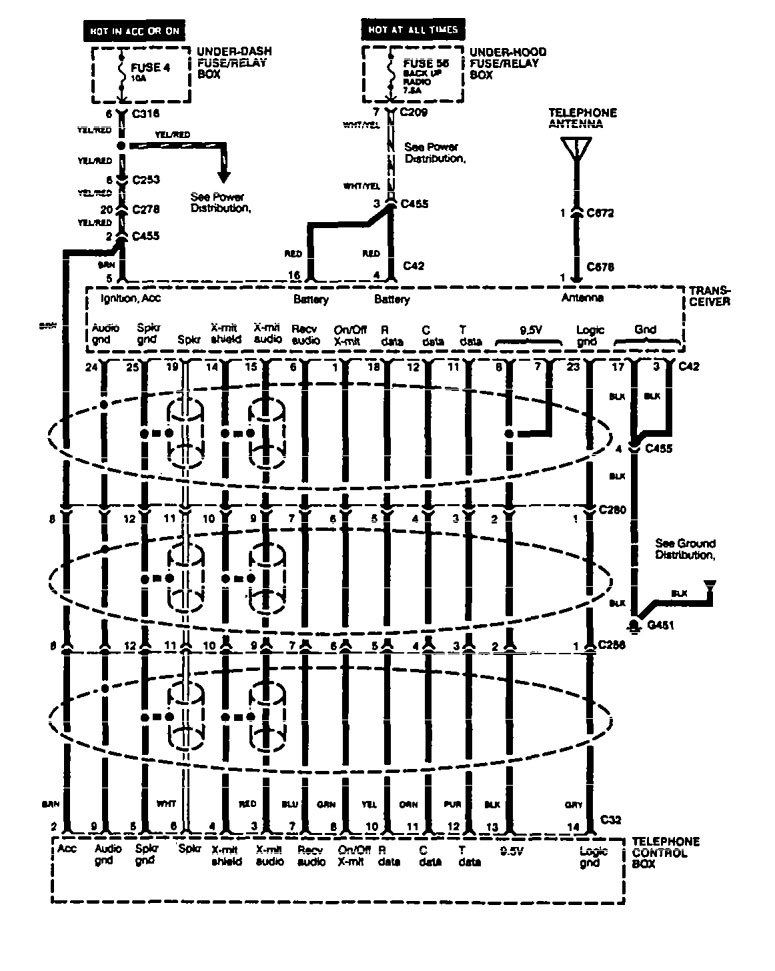 Acura Legend (1994 – 1995) – wiring diagram – mobile telephone