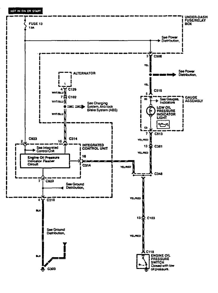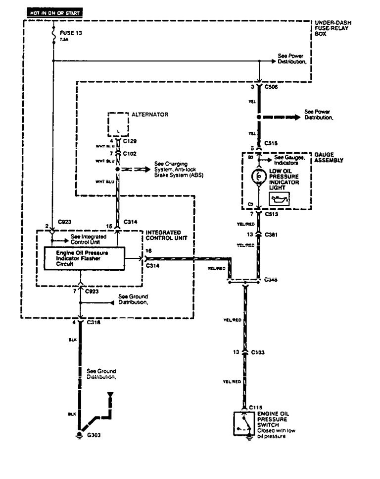 Acura Legend (1994 – 1995) – wiring diagram – oil warning