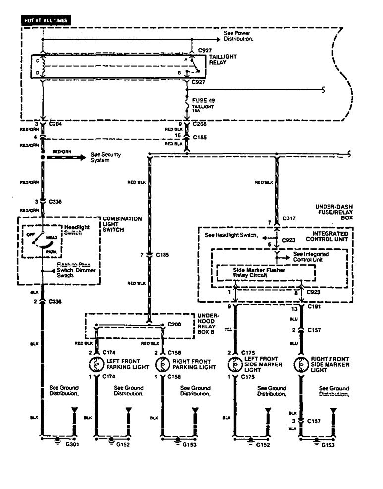 Acura Legend (1994 – 1995) – wiring diagram – parking lamp