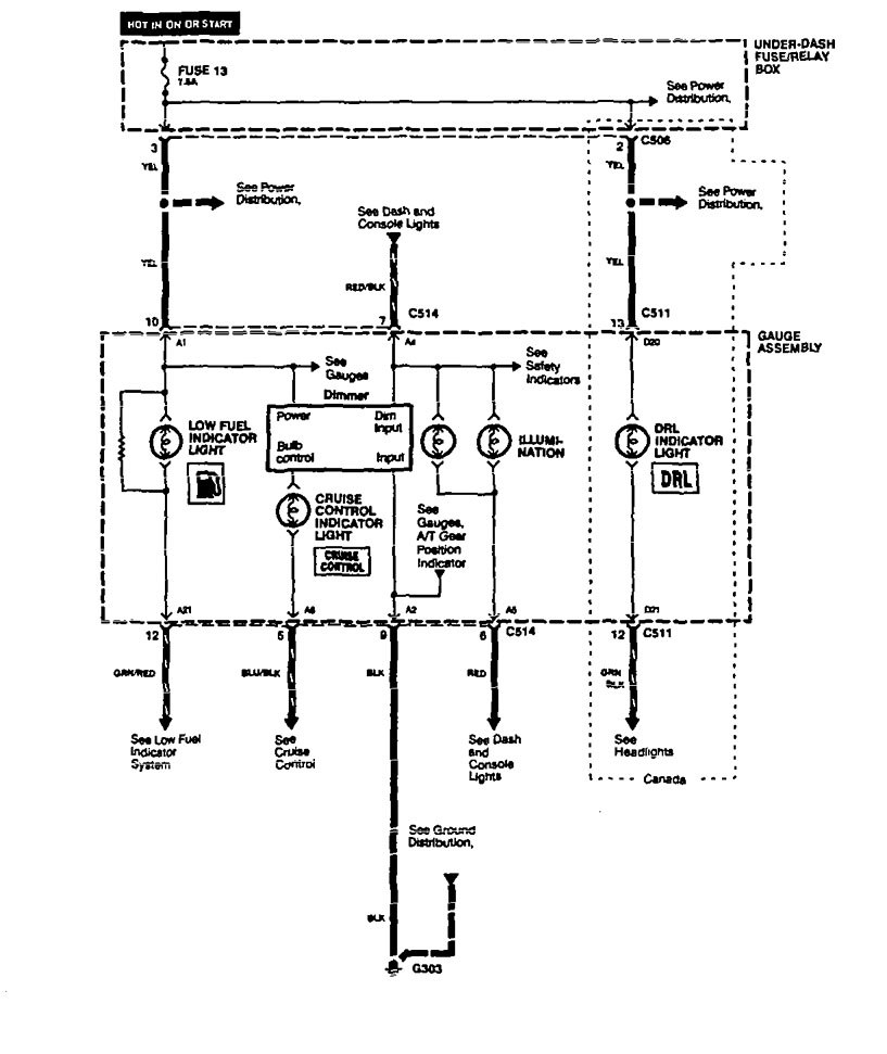 Acura Legend (1994) – wiring diagram – indicator lamp