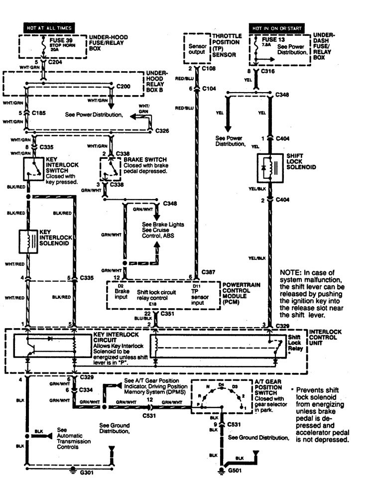 Acura Legend (1994) – wiring diagram – shift interlock