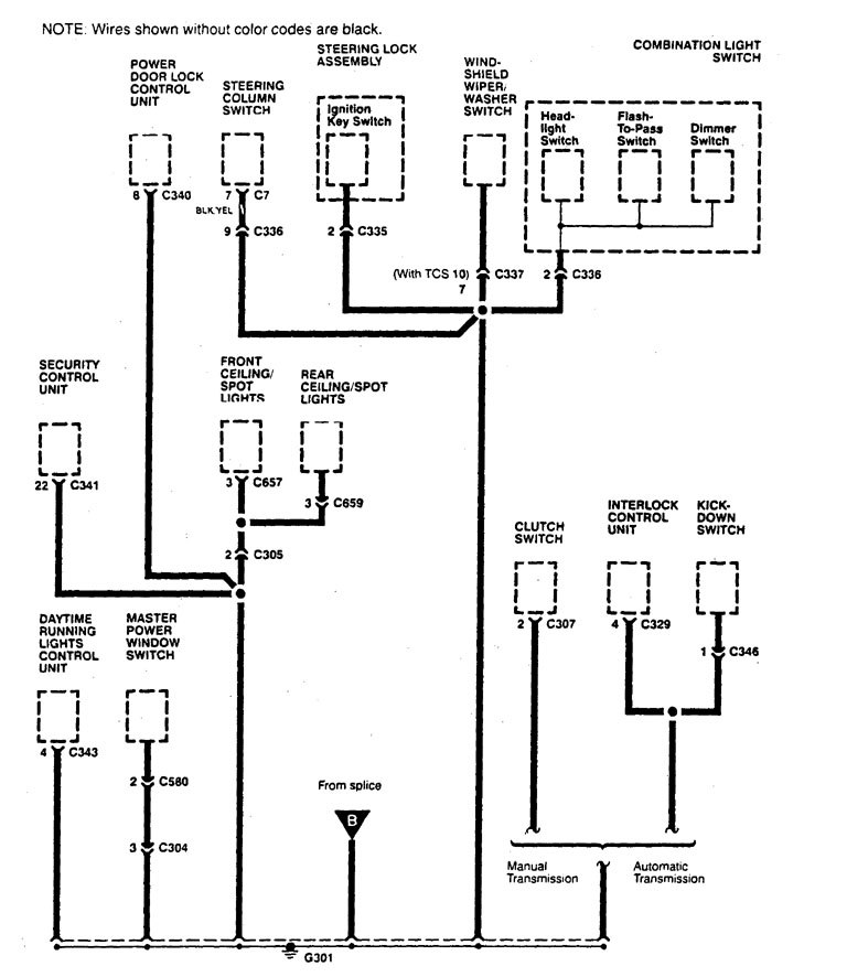 Acura Legend – wiring diagram – ground distribution (part 1)