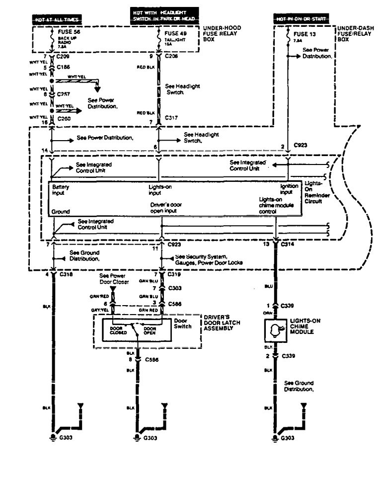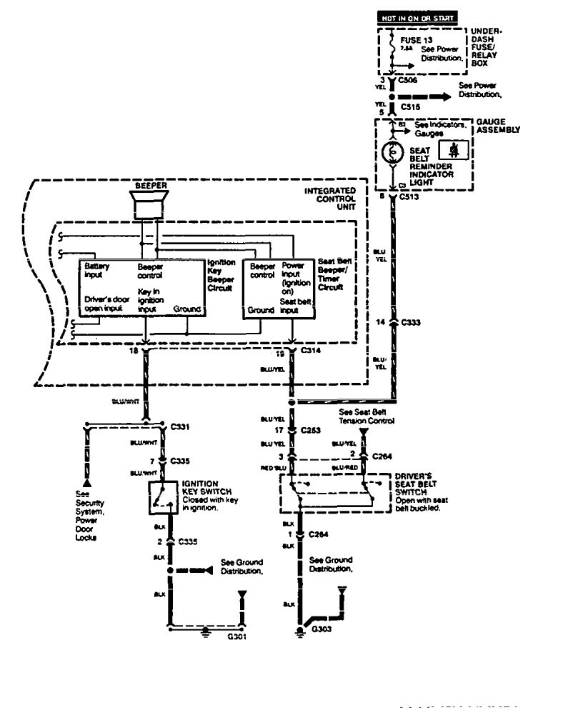 Acura Legend (1995) – wiring diagram – seat belt warning