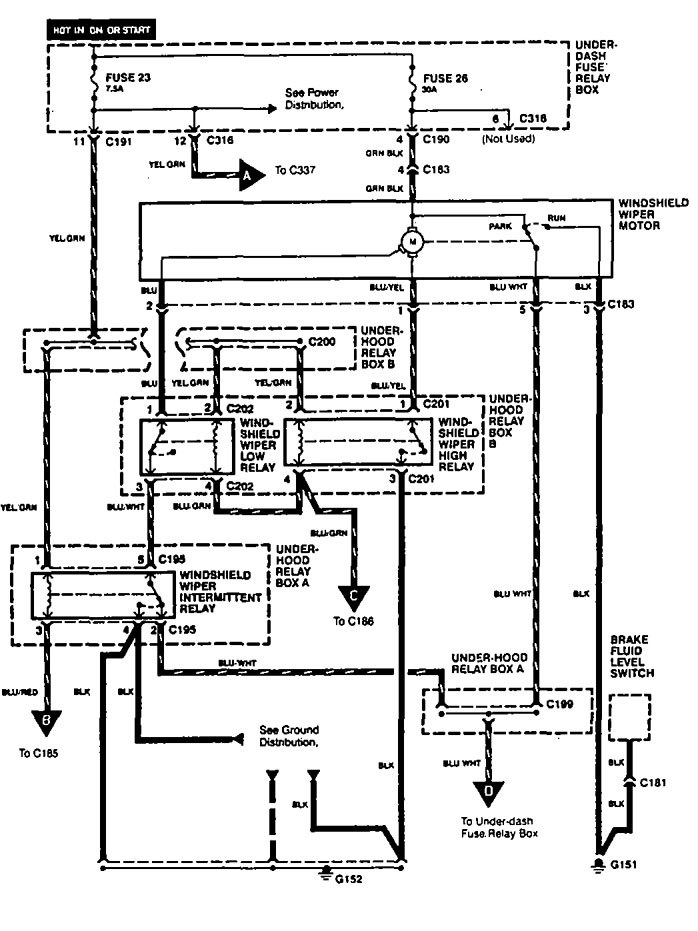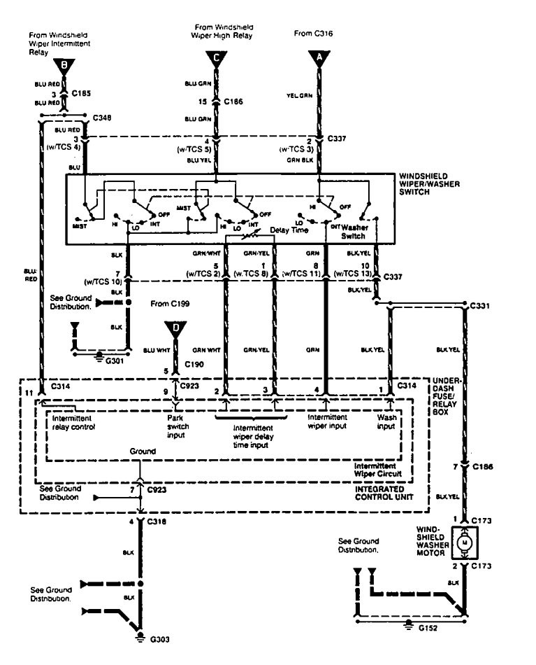 Acura Legend (1995) – wiring diagram – wiper/washer