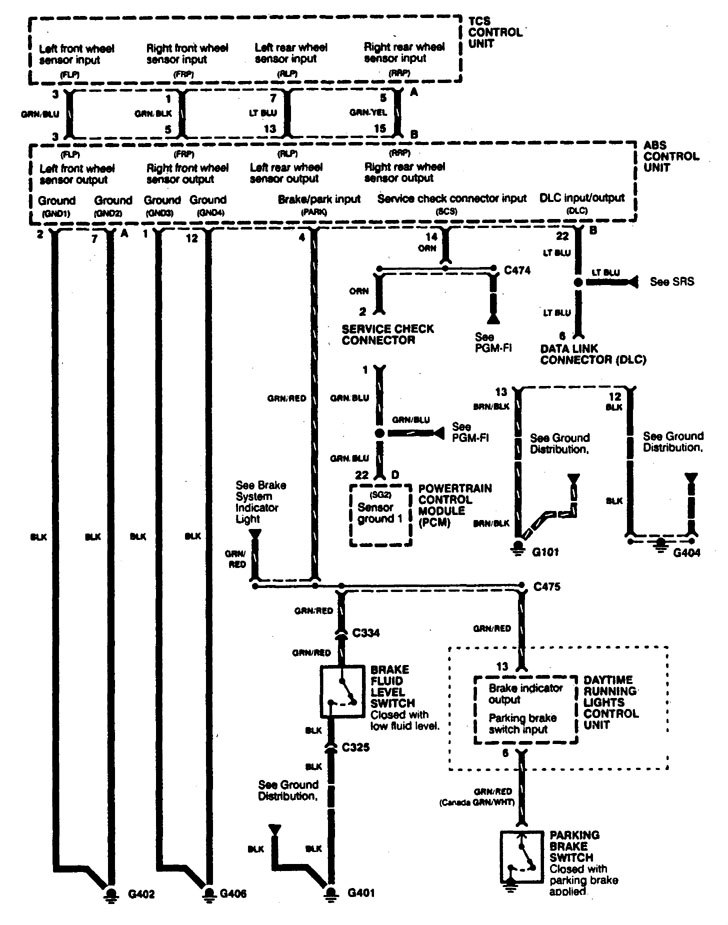 Acura RL (1996 – 1997) – wiring diagrams – brake controls