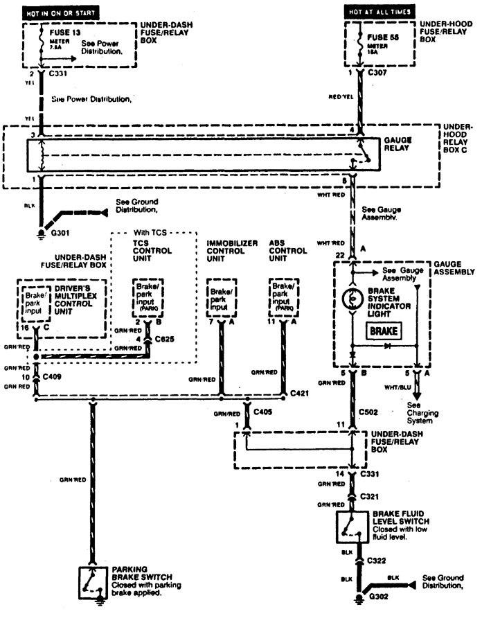 Acura RL (1996 – 1999) – wiring diagrams – brake warning system