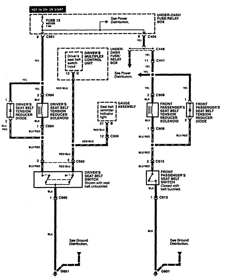 Acura RL (1996 – 1997) – wiring diagrams – seat belts