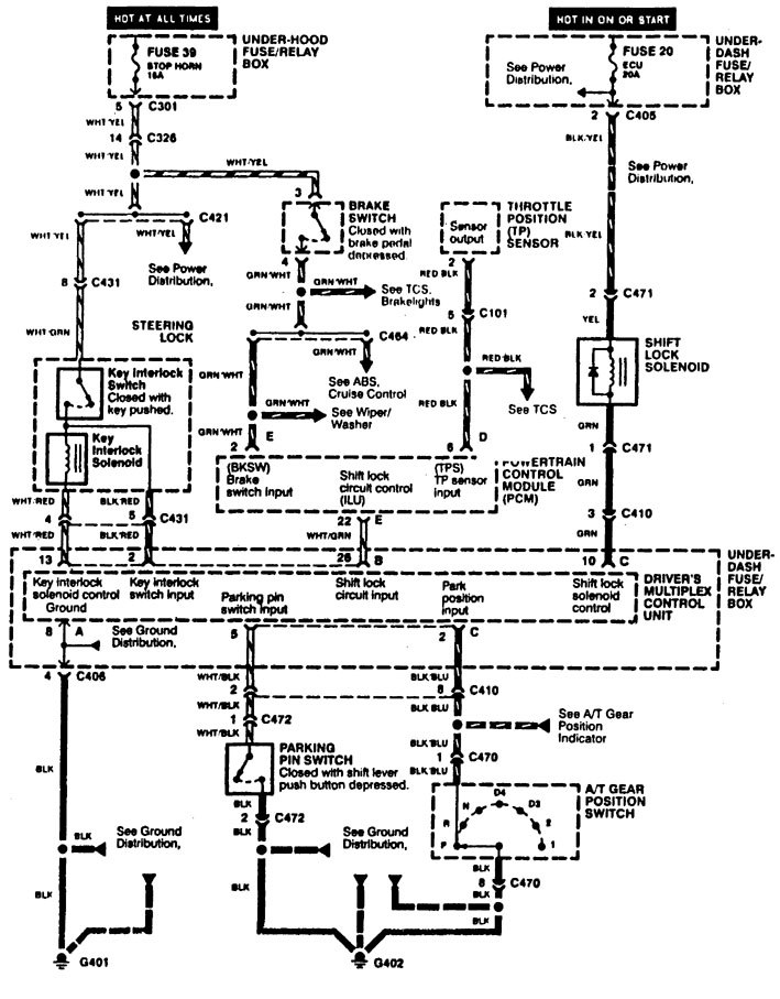 Acura RL (1996 – 1999) – wiring diagrams – shift interlock