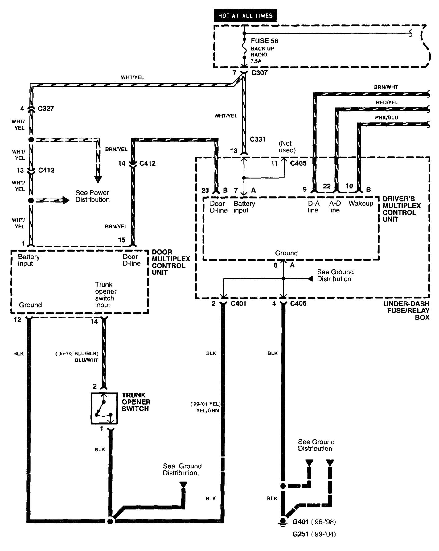 Acura RL (2003 – 2004) – wiring diagrams – luggage compartment release