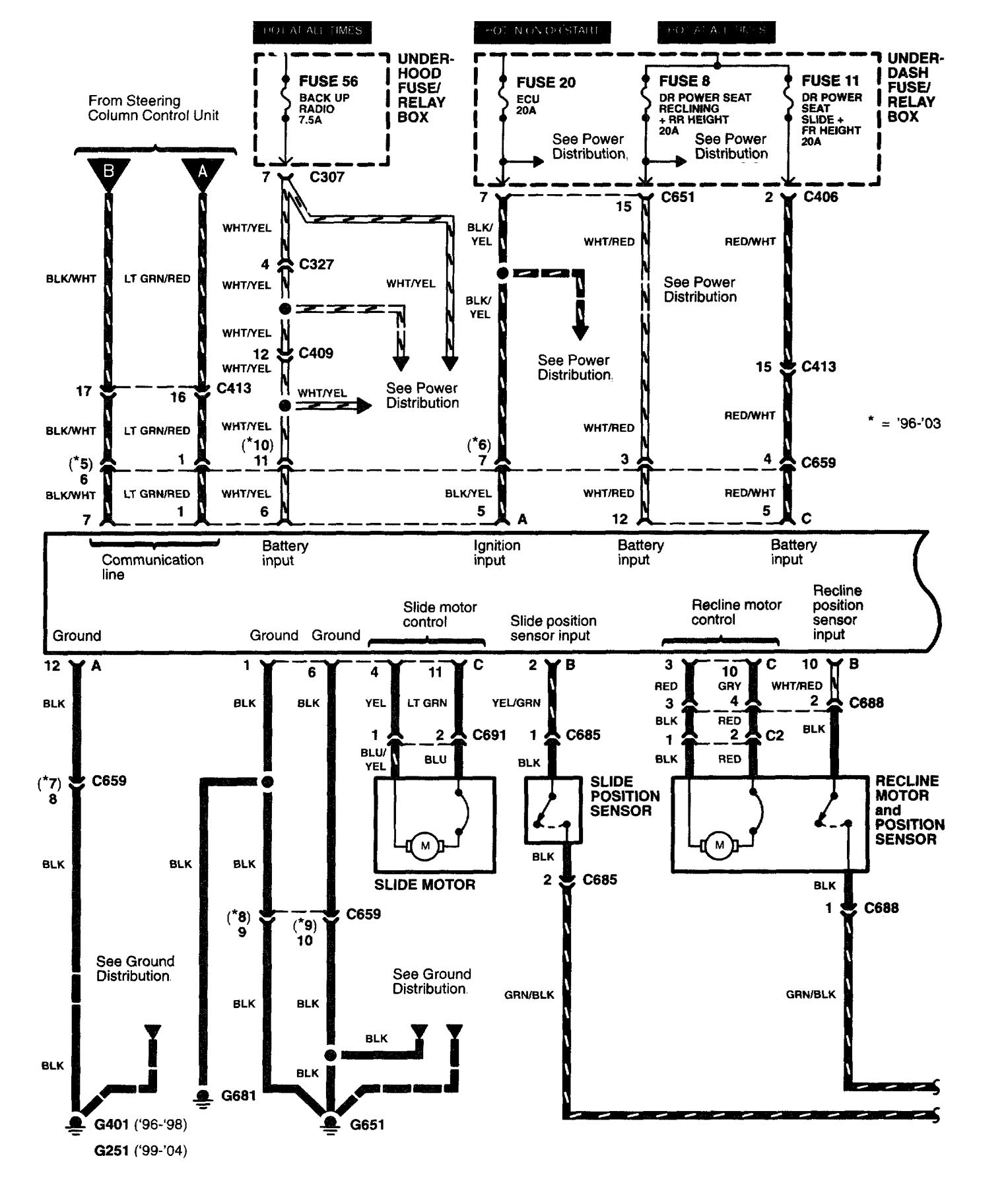 Acura RL (2003 – 2004) – wiring diagrams – power seats