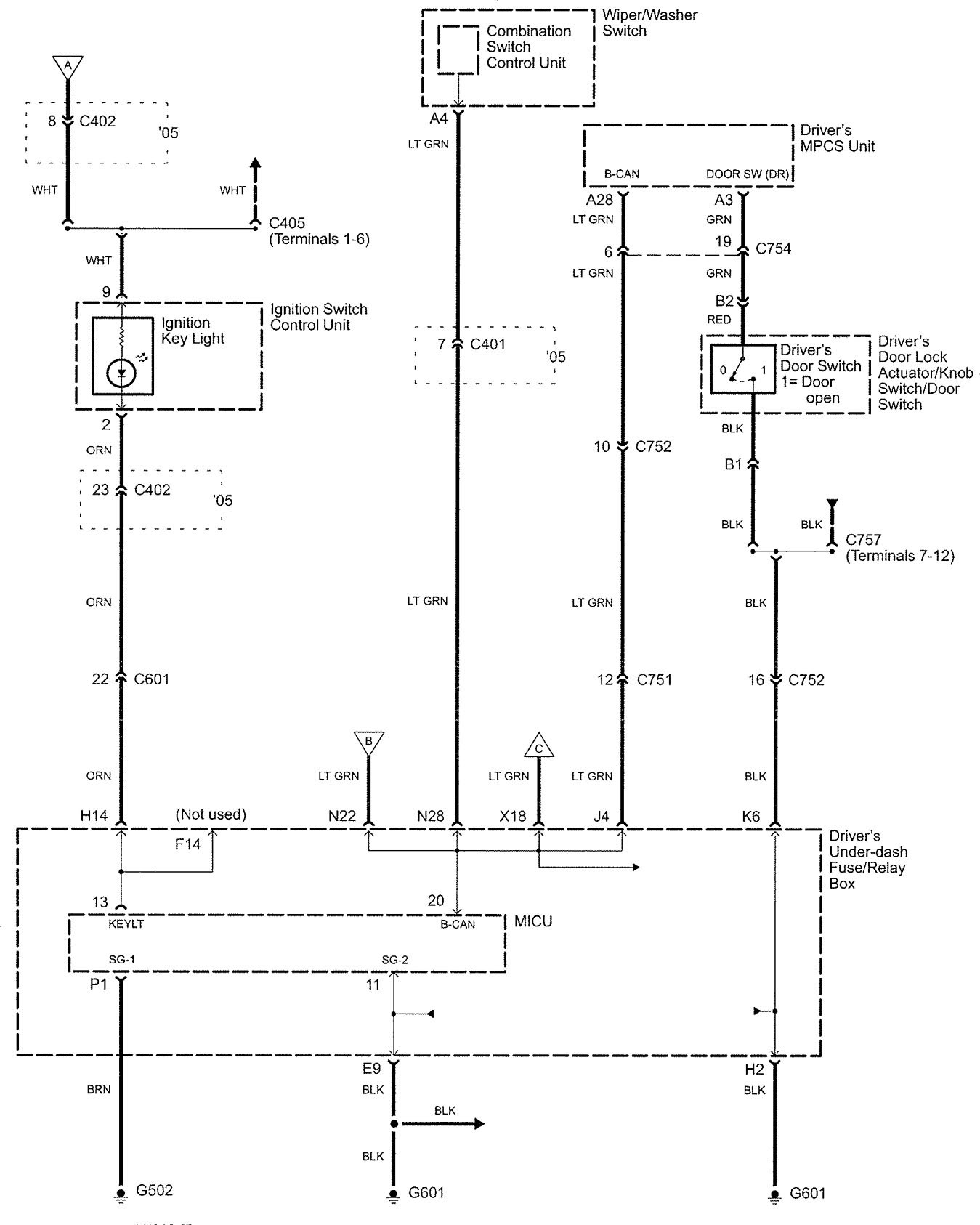 Acura RL (2005 – 2006) – wiring diagrams – oil warning