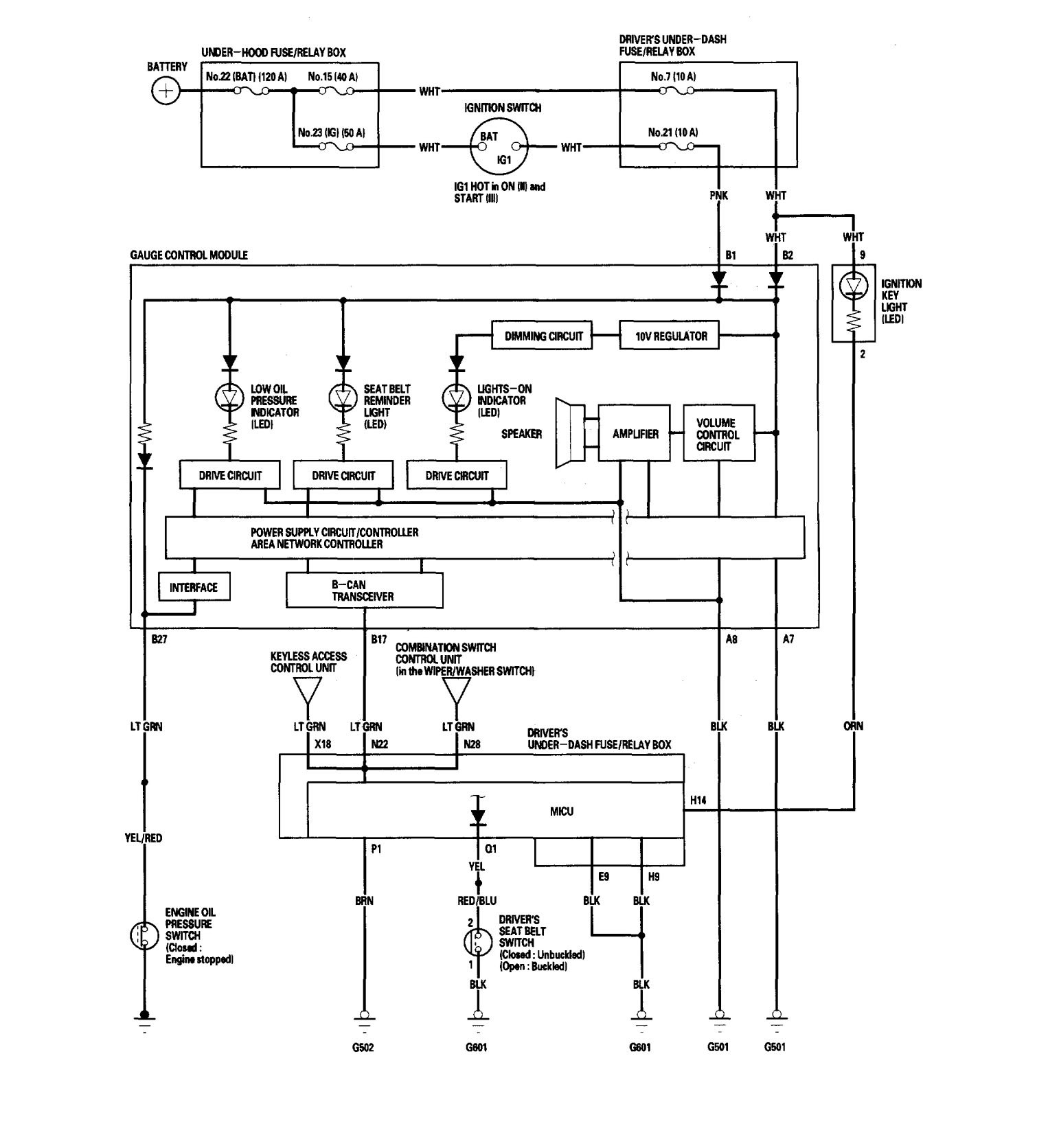 Acura SLX (1996) – wiring diagrams – oil warning Year of productions: 1996 Oil warning WARNING: Terminal and harness assignments for individual connectors will vary depending on vehicle equipment level, model, and market.