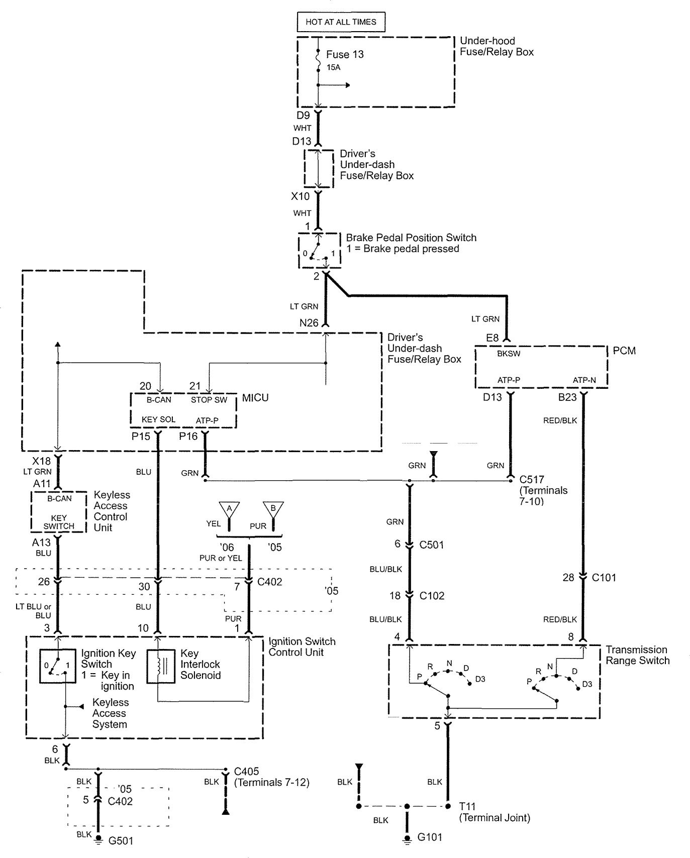Acura RL (2006) – wiring diagrams – shift interlock