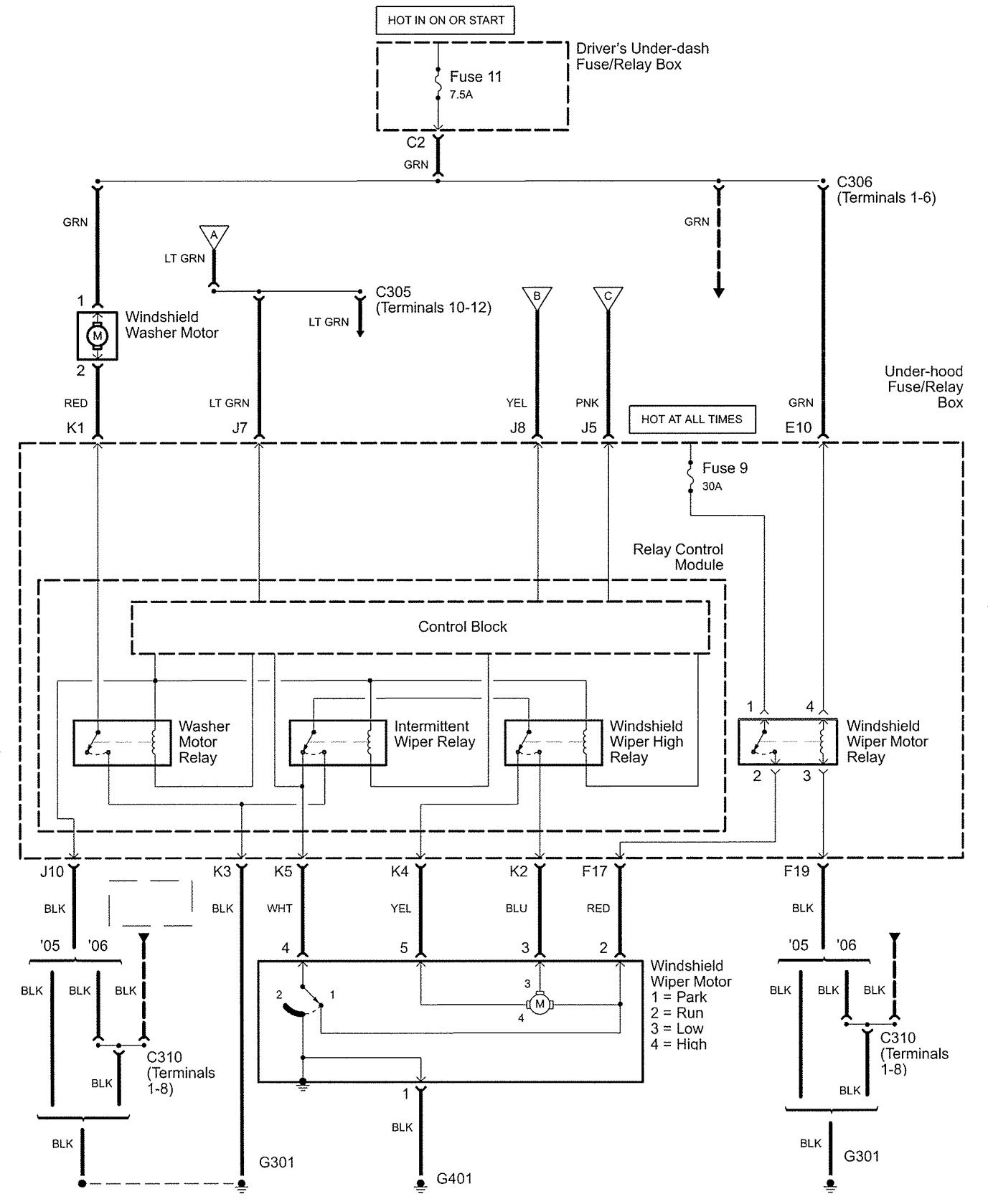 Acura RL (2006) – wiring diagrams – wiper/washer