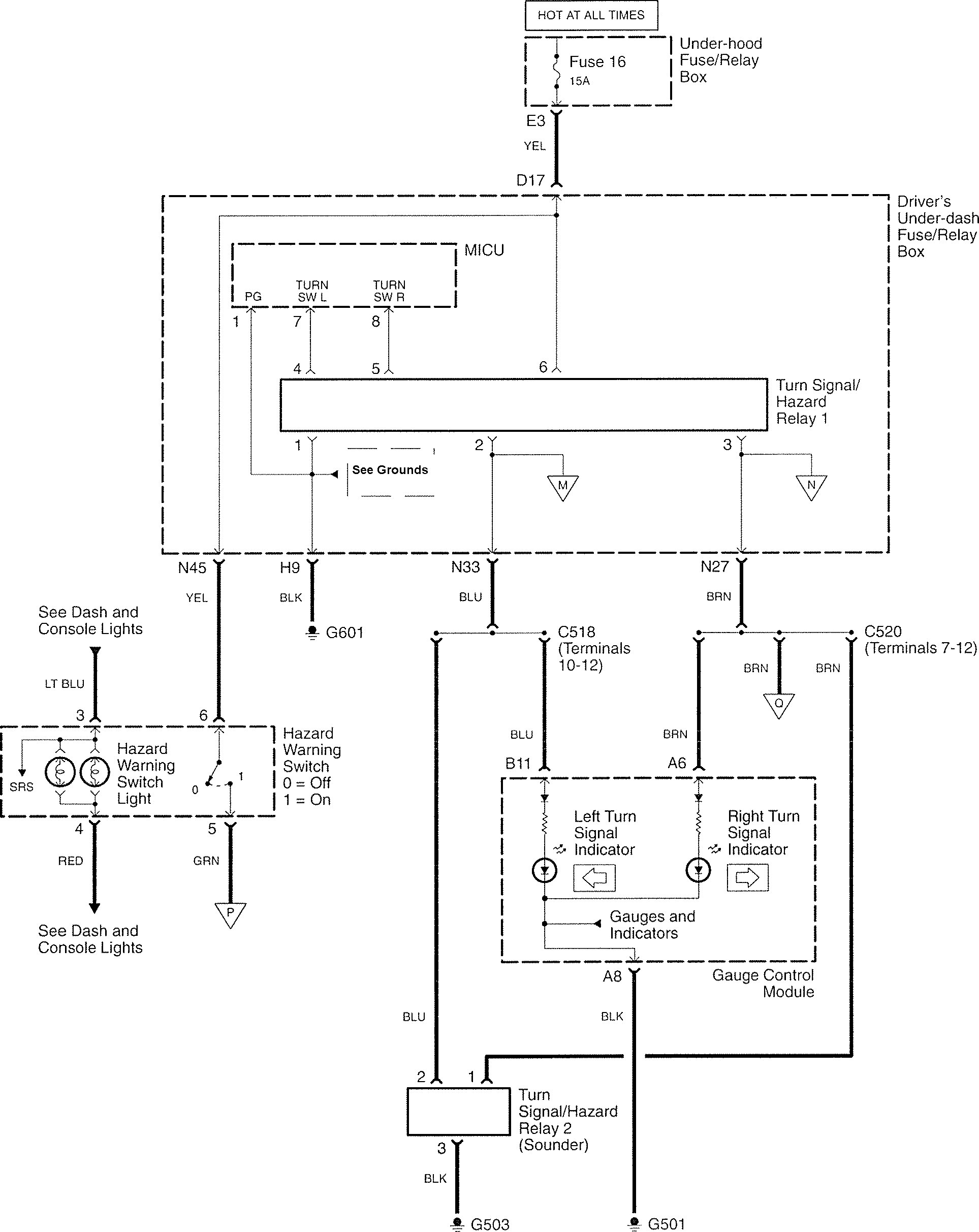 Acura RL (2007 – 2008) – wiring diagrams – hazard lamp