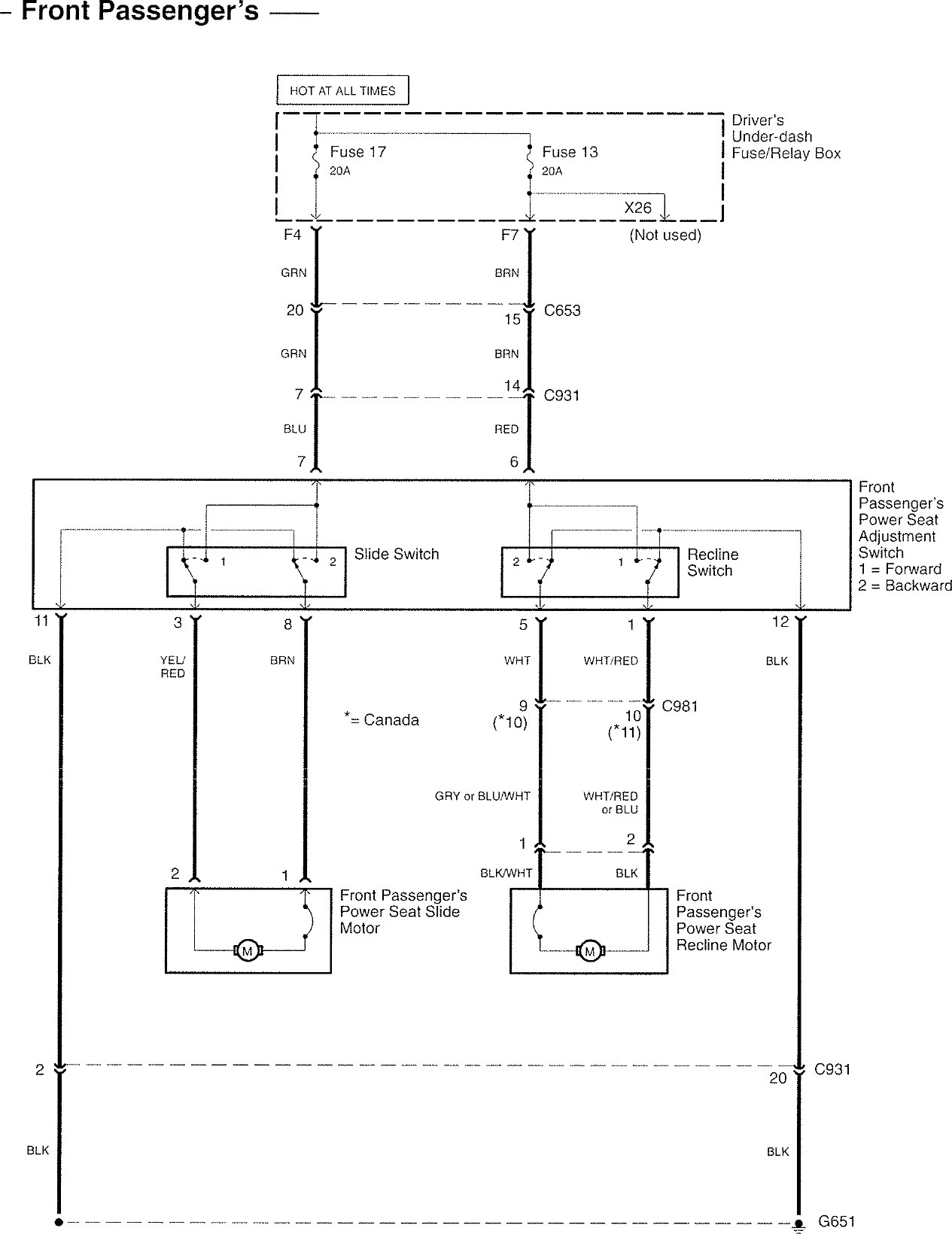 Acura RL - wiring diagram - power seats (part 11)