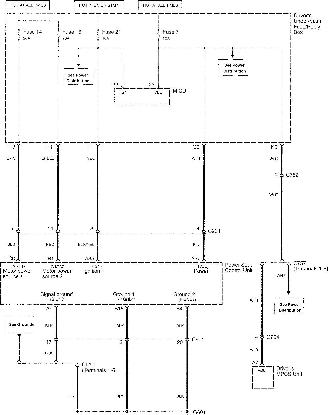 Acura RL - wiring diagram - power seats (part 6)