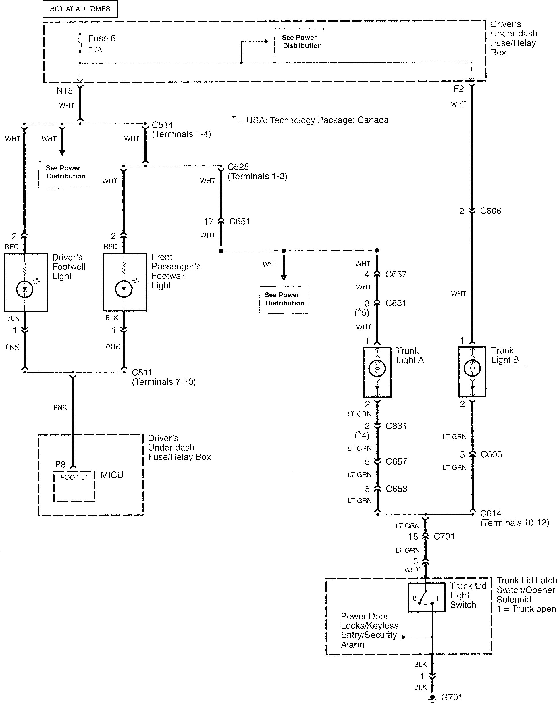 Acura RL (2008) – wiring diagrams – luggage compartment lamps