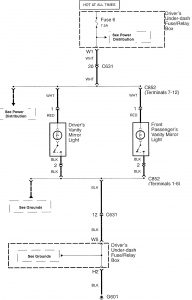 Acura RL (2008 – 2010) – wiring diagrams – vanity mirror lamp