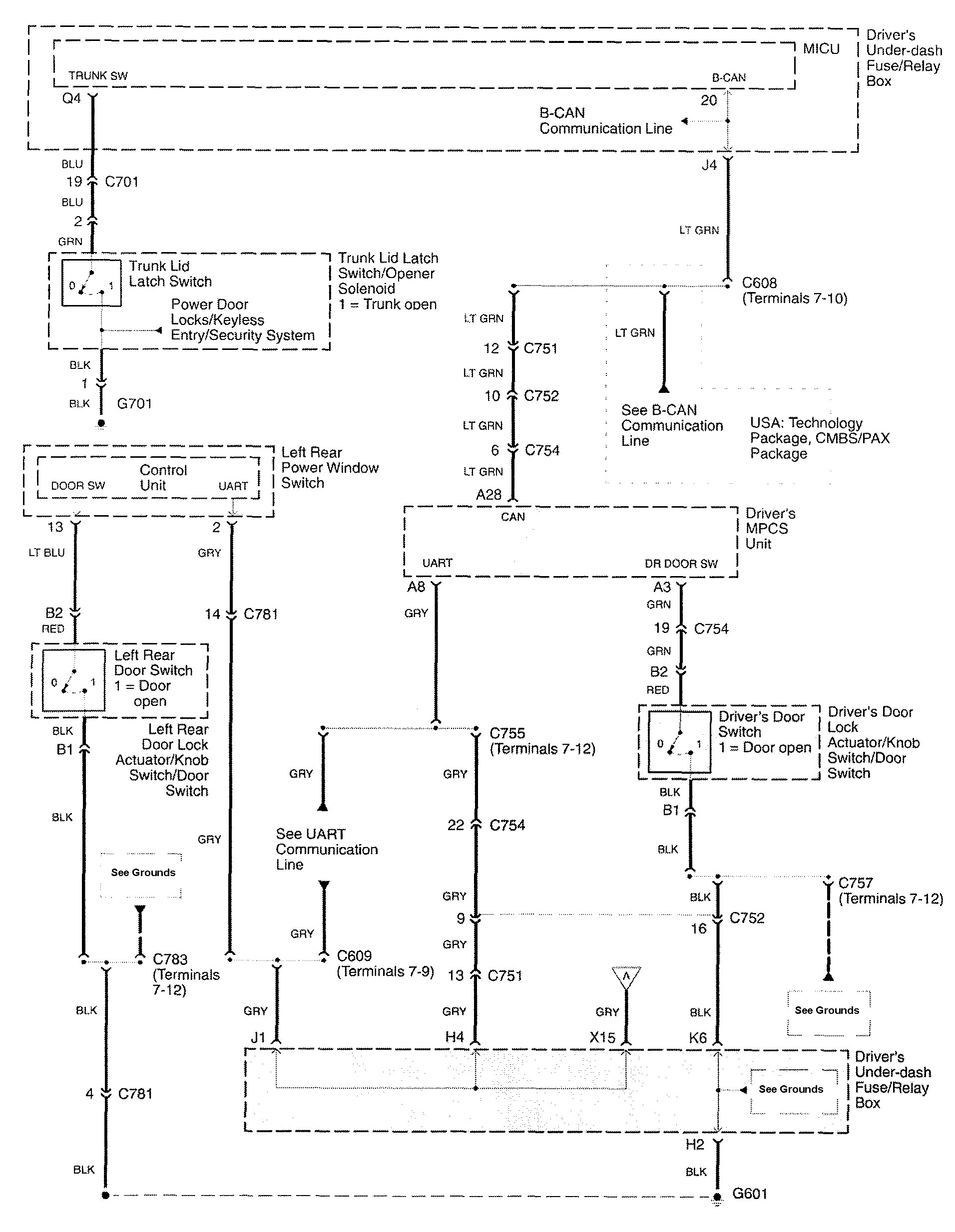Acura RL (2009) – wiring diagrams – door ajar warning