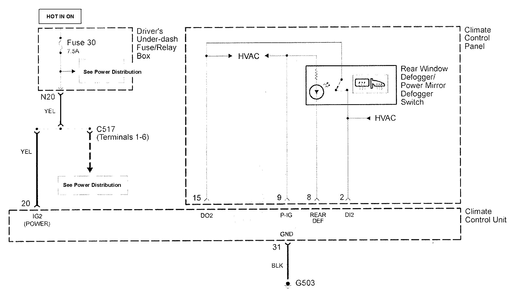 Acura RL (2009 – 2011) – wiring diagrams – rear window defogger