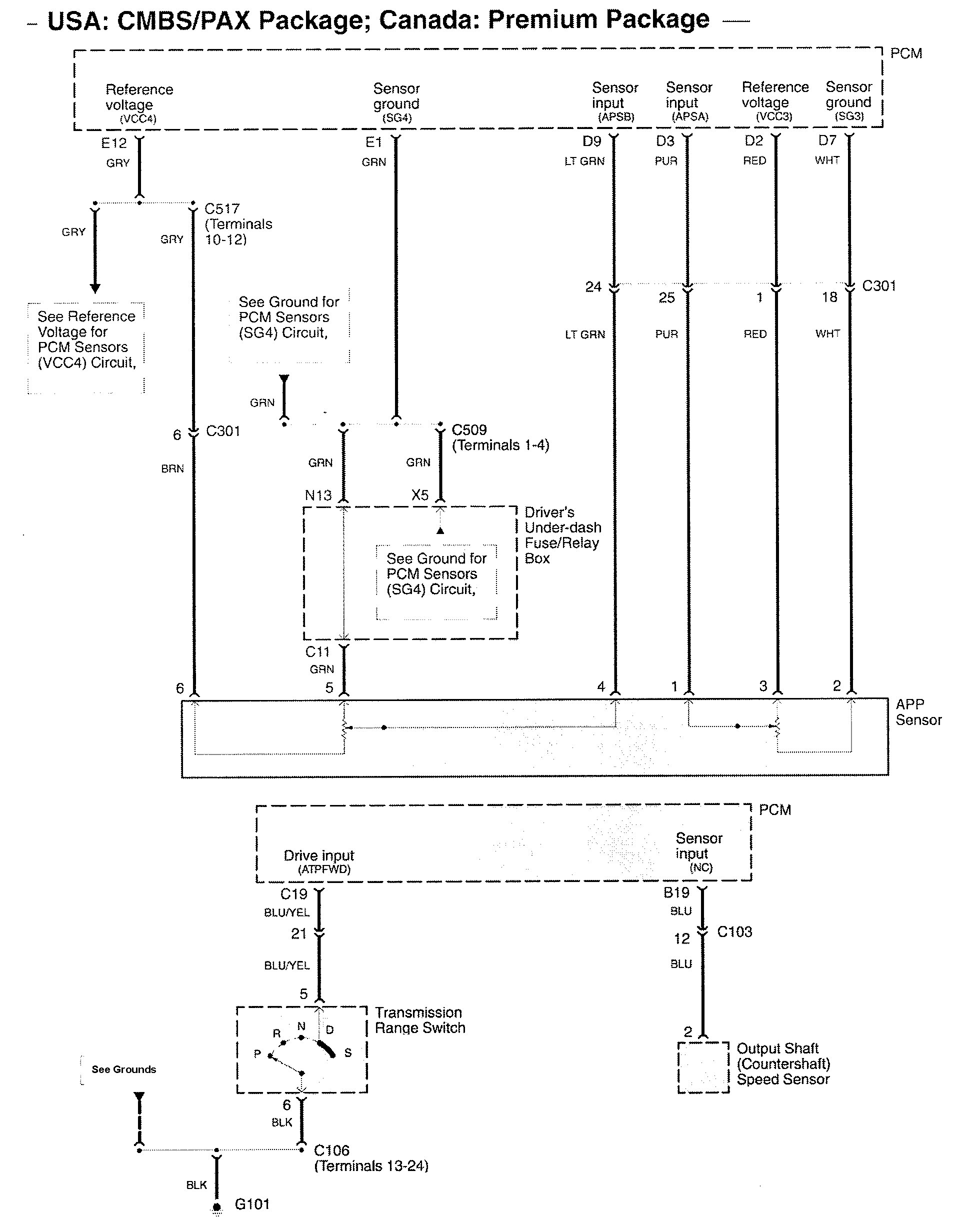 WARNING: Terminal and harness assignments for individual connectors will vary depending on vehicle equipment level, model, and market.