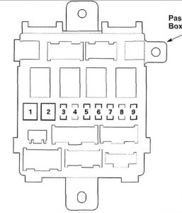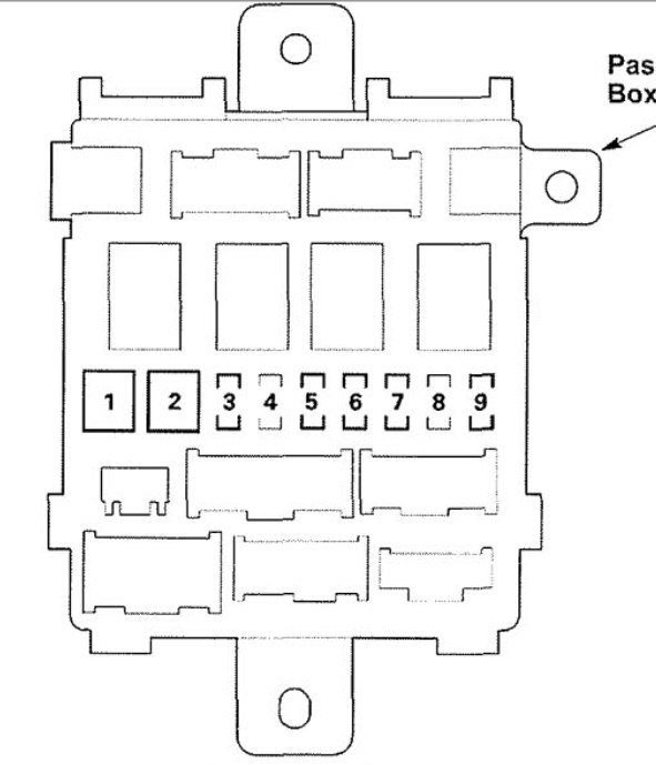 | 22 | +B AS F/B | 70 | Fuses 1, 2, 3, 4, 5, 6, 8 and 9 in Passenger’s Under-dash Fuse/Relay Box |