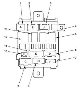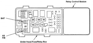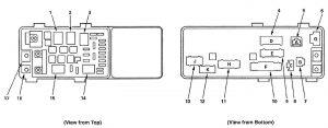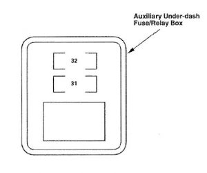 | 15 | BACK UP, ACC | 40 | (Fuse 7 in Under-hood Fuse/Relay Box, Fuses 5, 6, 7, 8 and 9 in Driver’s Under-dash Fuse/Relay Box |
