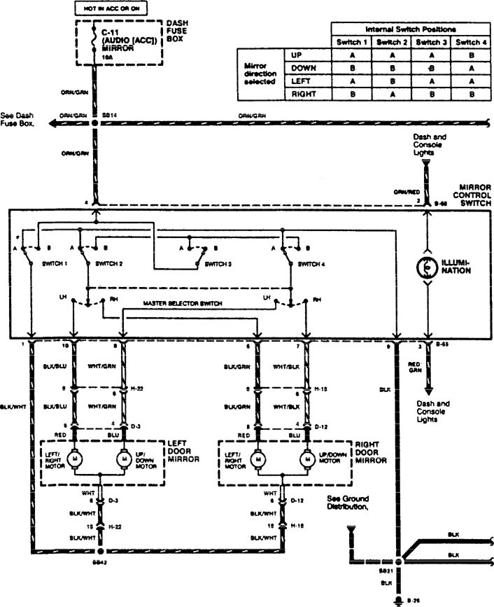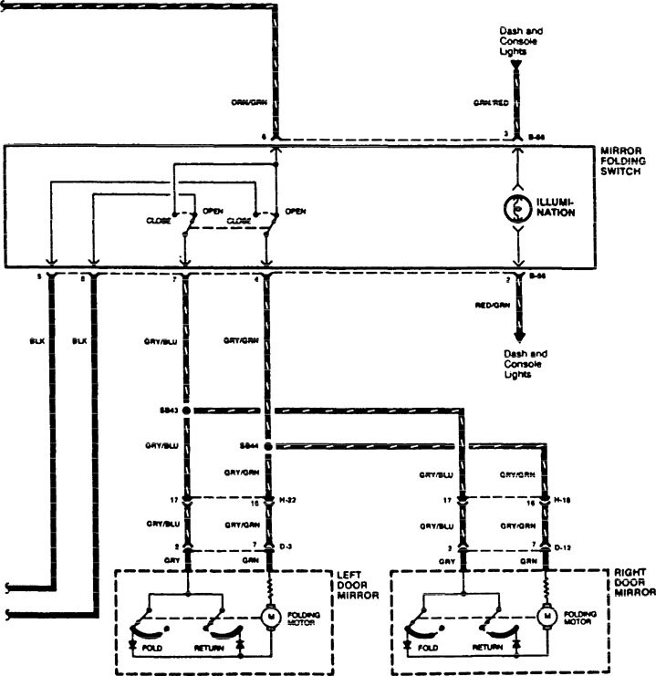 Acura SLX (1996) – wiring diagrams – power mirrors