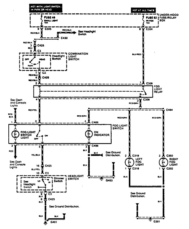 Acura TL (1996 – 1997) – wiring diagrams – fog lamp