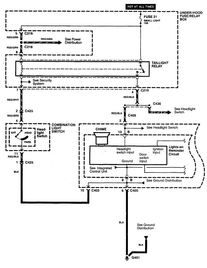 Acura TL (1998) – wiring diagrams – lamp out warning
