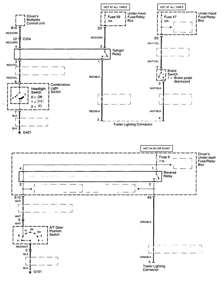 Acura TL (1998 – 2001) – wiring diagrams – trailer/camper adapter