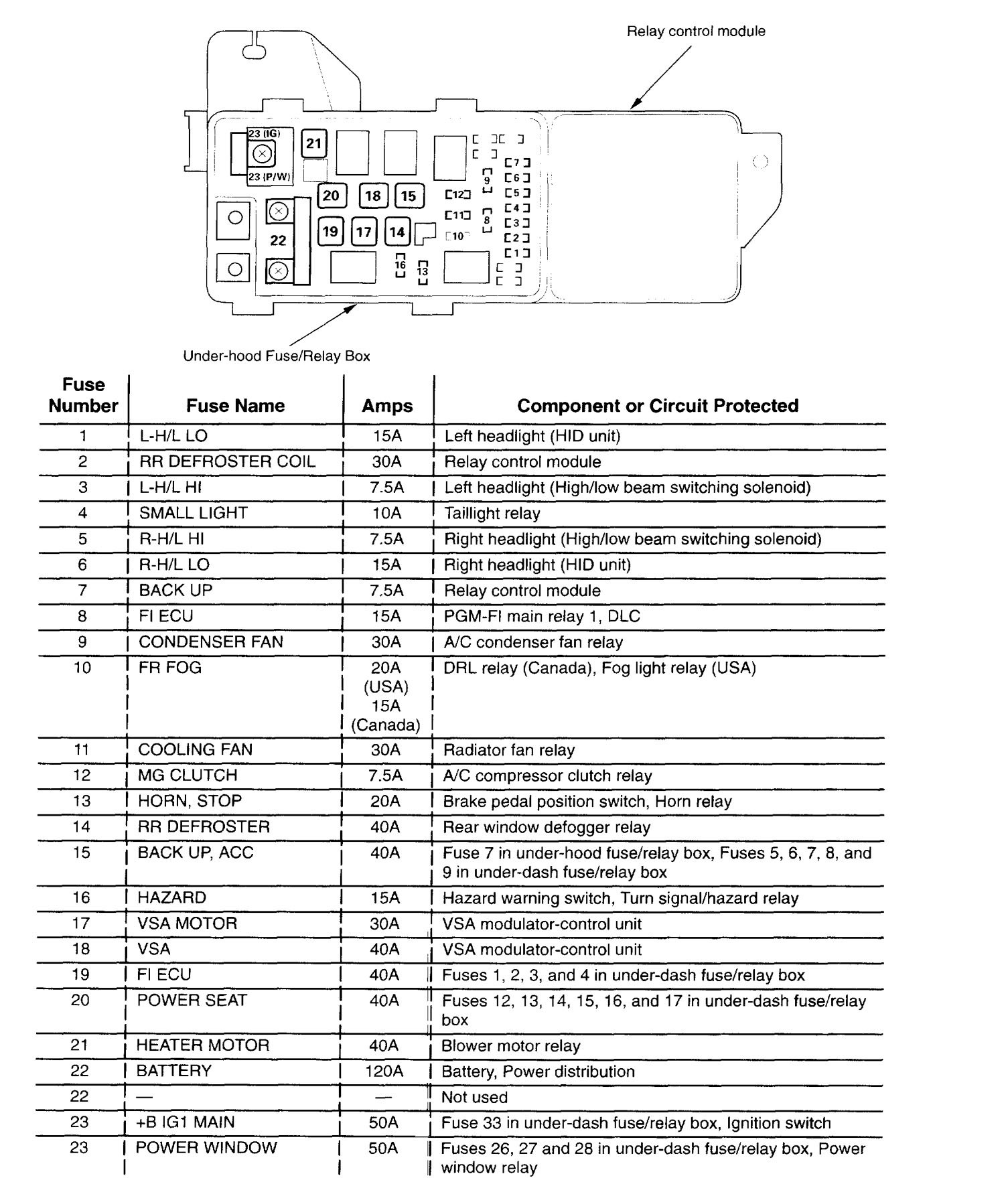 Acura TL (2003 – 2004) – wiring diagrams – relay