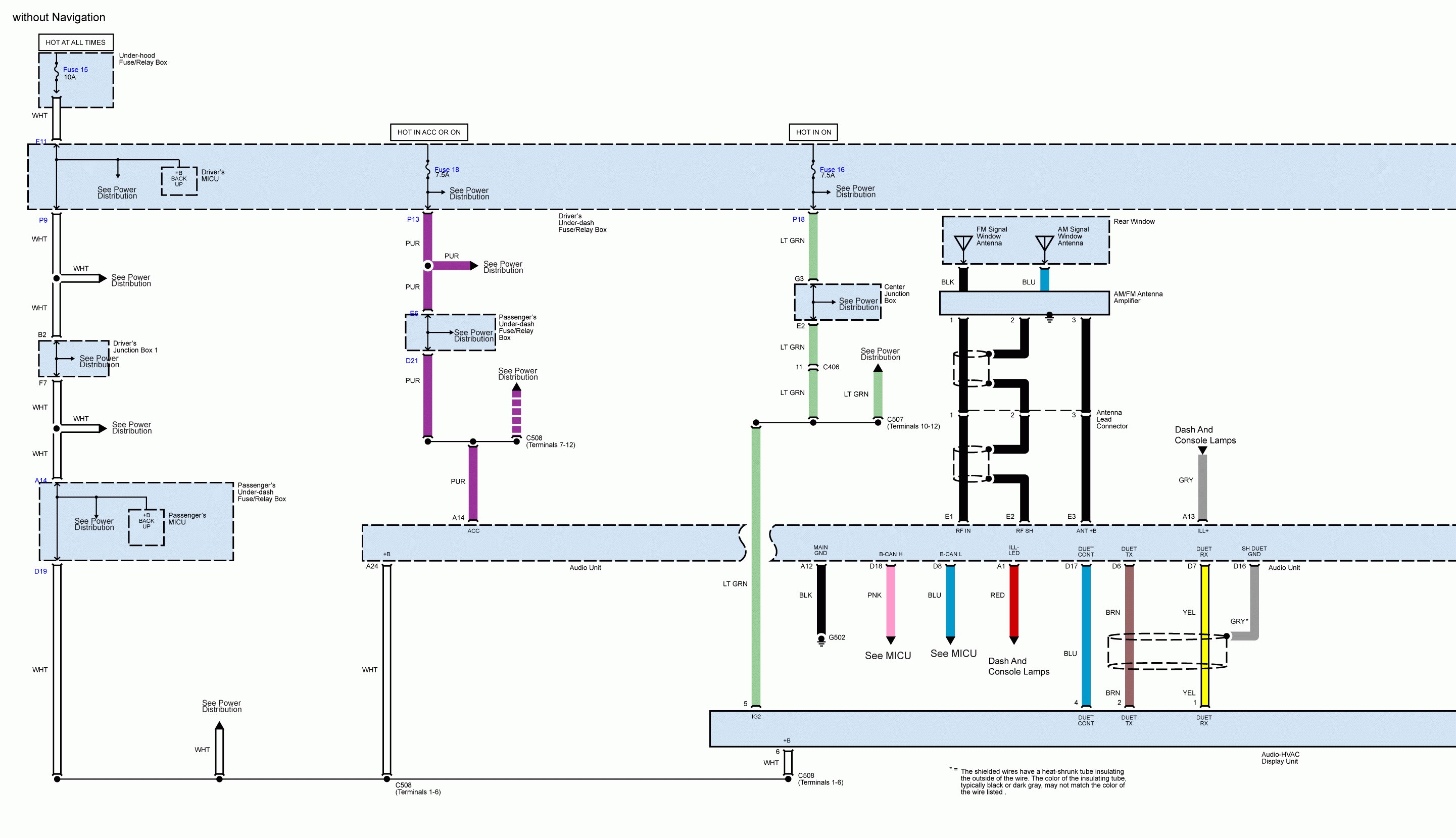 WARNING: Terminal and harness assignments for individual connectors will vary depending on vehicle equipment level, model, and market.
