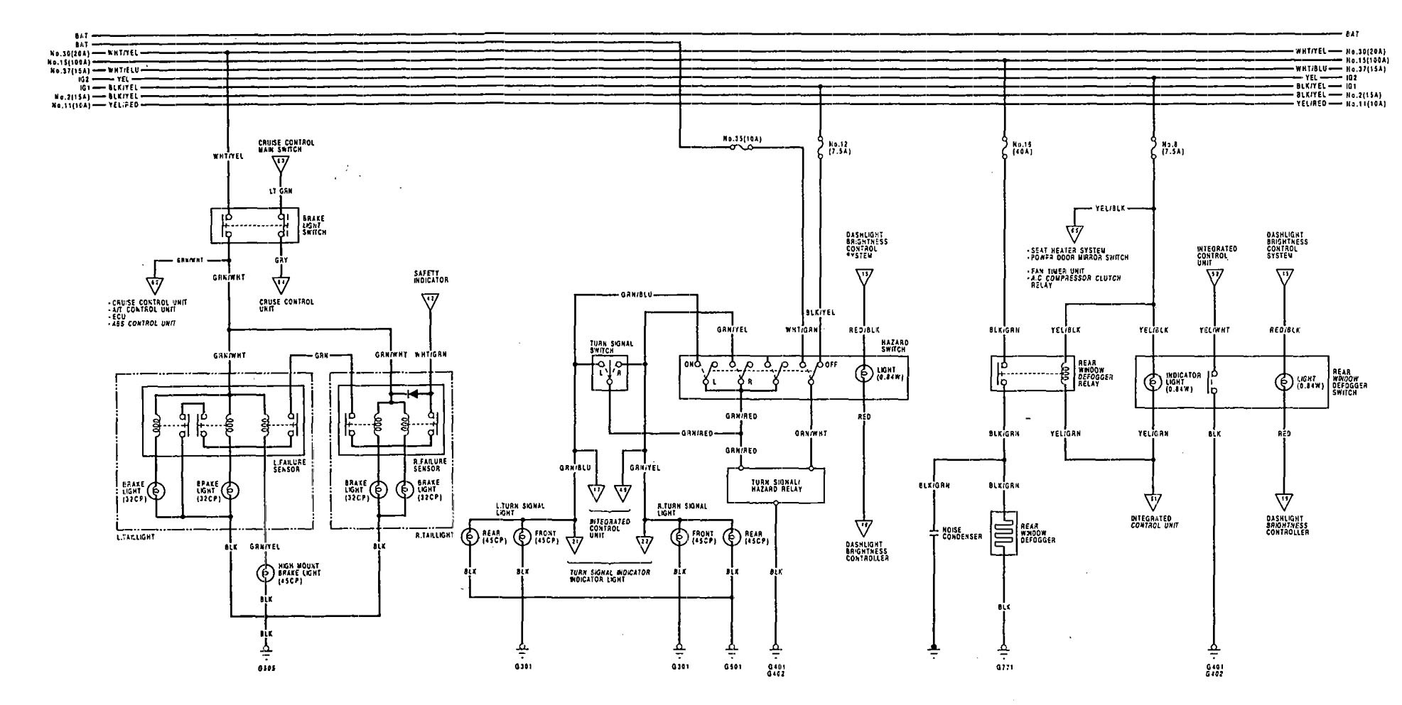 Acura Vigor (1992 – 1993) – wiring diagrams – rear window defogger