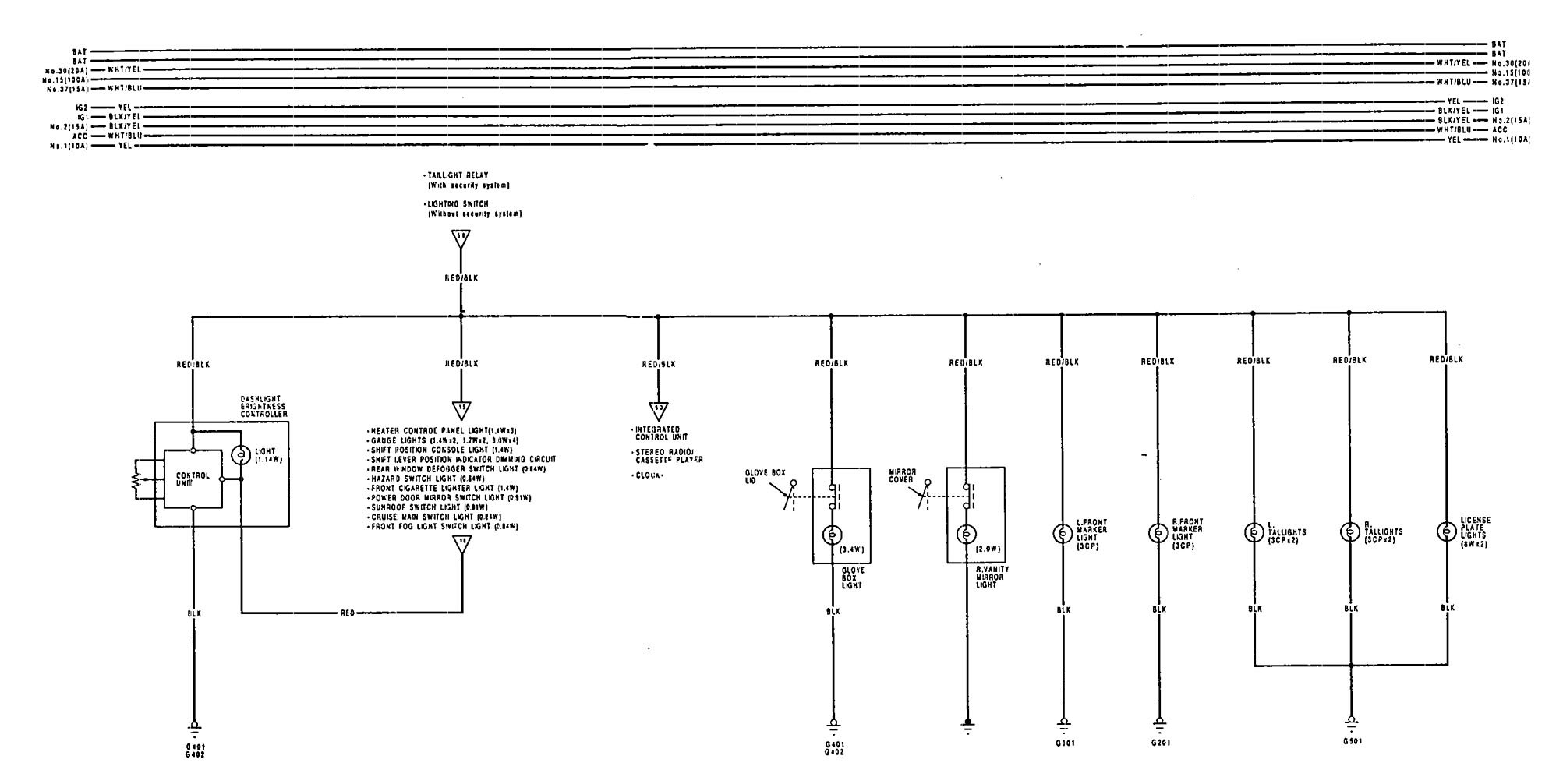 Acura Vigor (1992) – wiring diagrams – license plate lamp